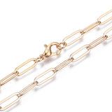 Gold plated brass paperclip chain necklace with lobster claw clasp. This necklace comes in an assortment of lengths, link sizes and colors, perfect for layering.