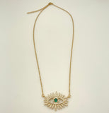 Plated stainless steel necklace with micro pavé cz protective evil eye pendant