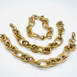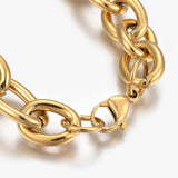 Gold plated stainless steel alternating large oval and round link chain necklace or bracelet with lobster claw clasp.
