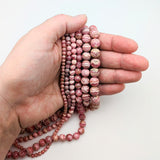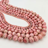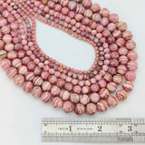 Rhodochrosite rounds available in 4mm, 5mm, 6mm, 8mm, 9mm, and 10mm.