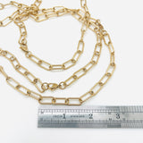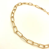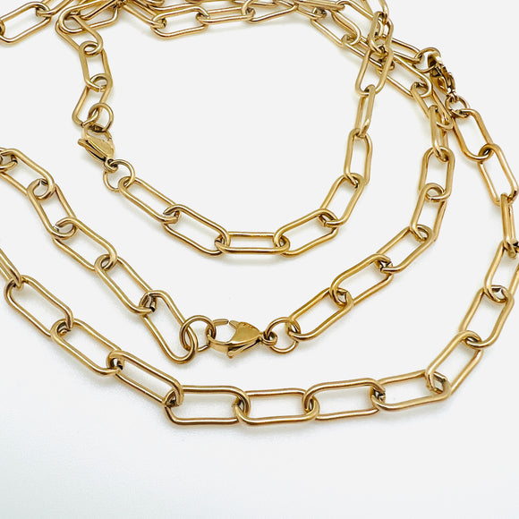 Plated stainless steel large round paperclip chain necklace with with a large lobster claw clasp.