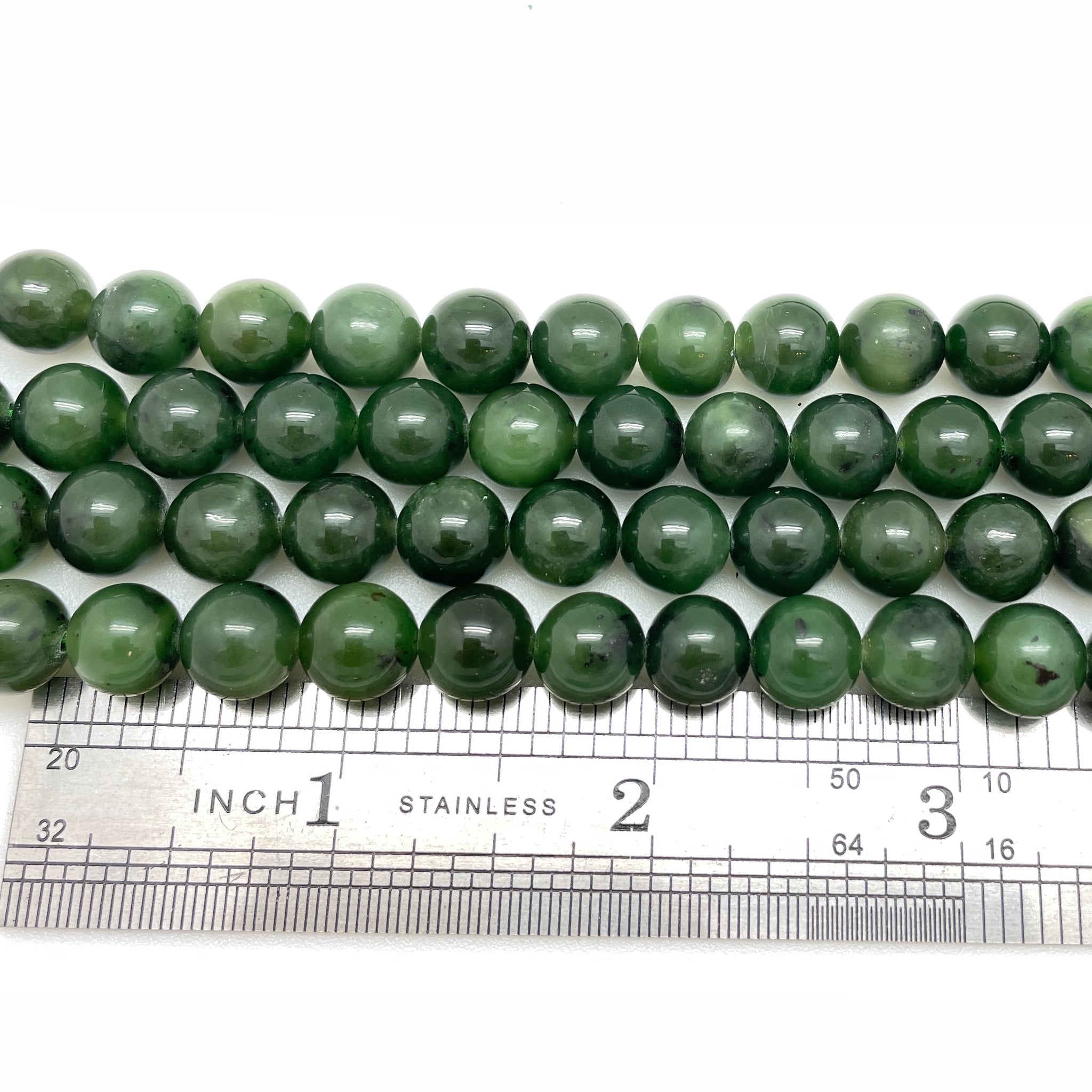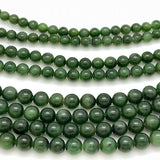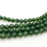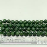 Deep green smooth Russian Nephrite Jade sold as a short strand of round beads. Strand length approx. 7.5" (just enough for a bracelet!)