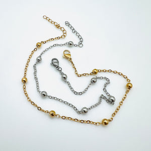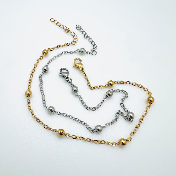 Plated stainless steel satellite chain anklet with lobster claw clasp and extender chain.