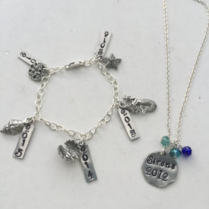 Start your collection of Sirens annual charms with a charm bracelet. This necklace includes a "Sirens" stamped tag with your start year and a crystal cluster in your choice of color.