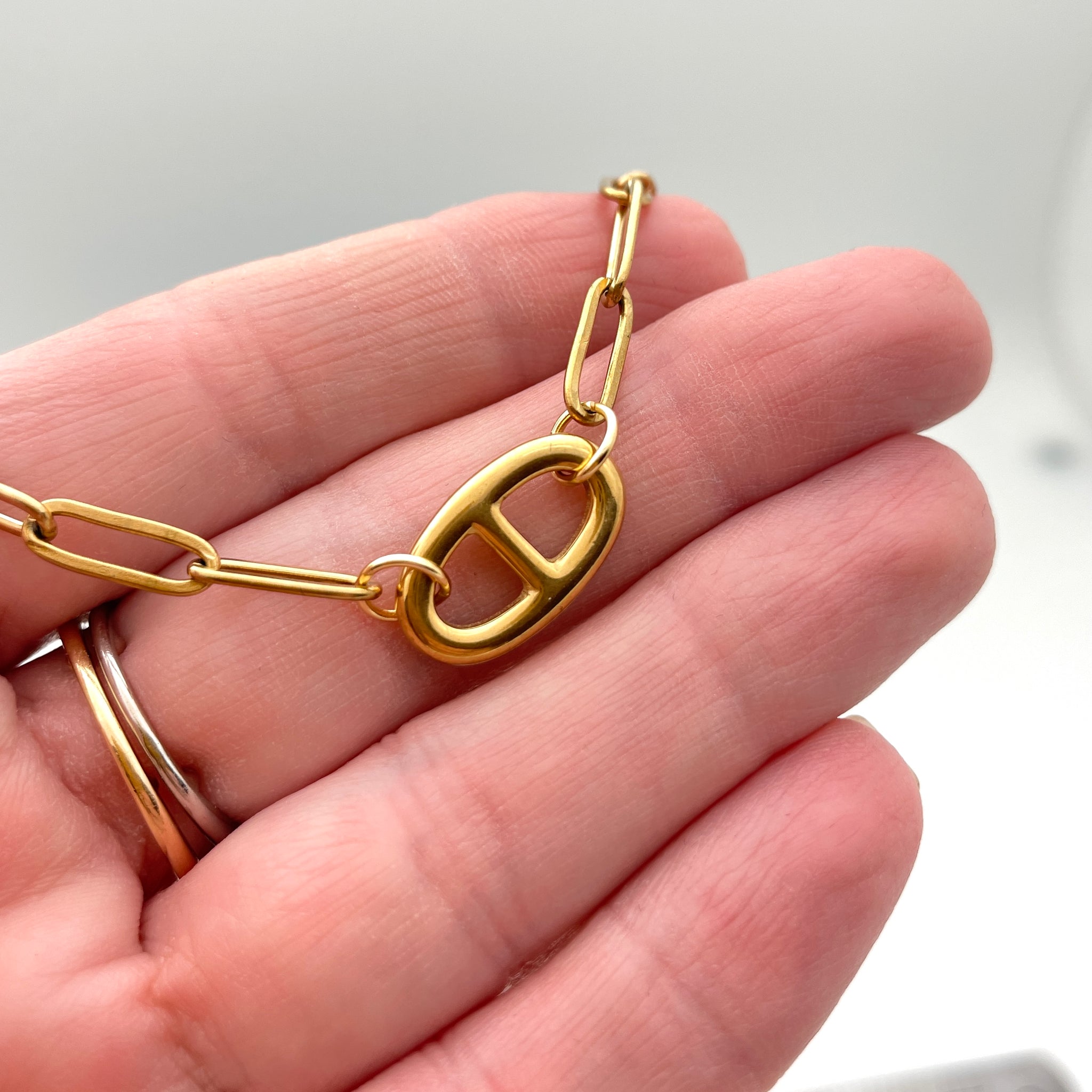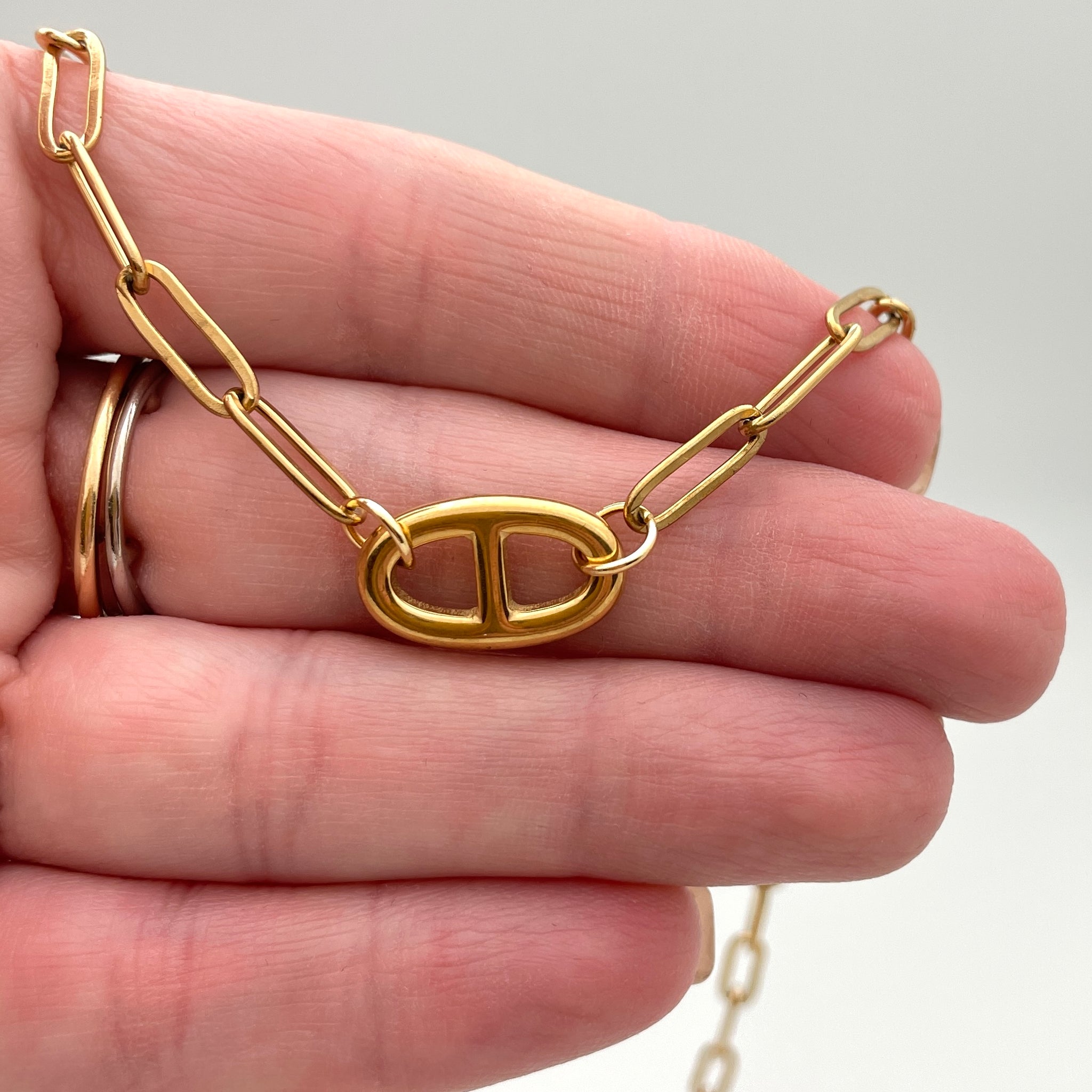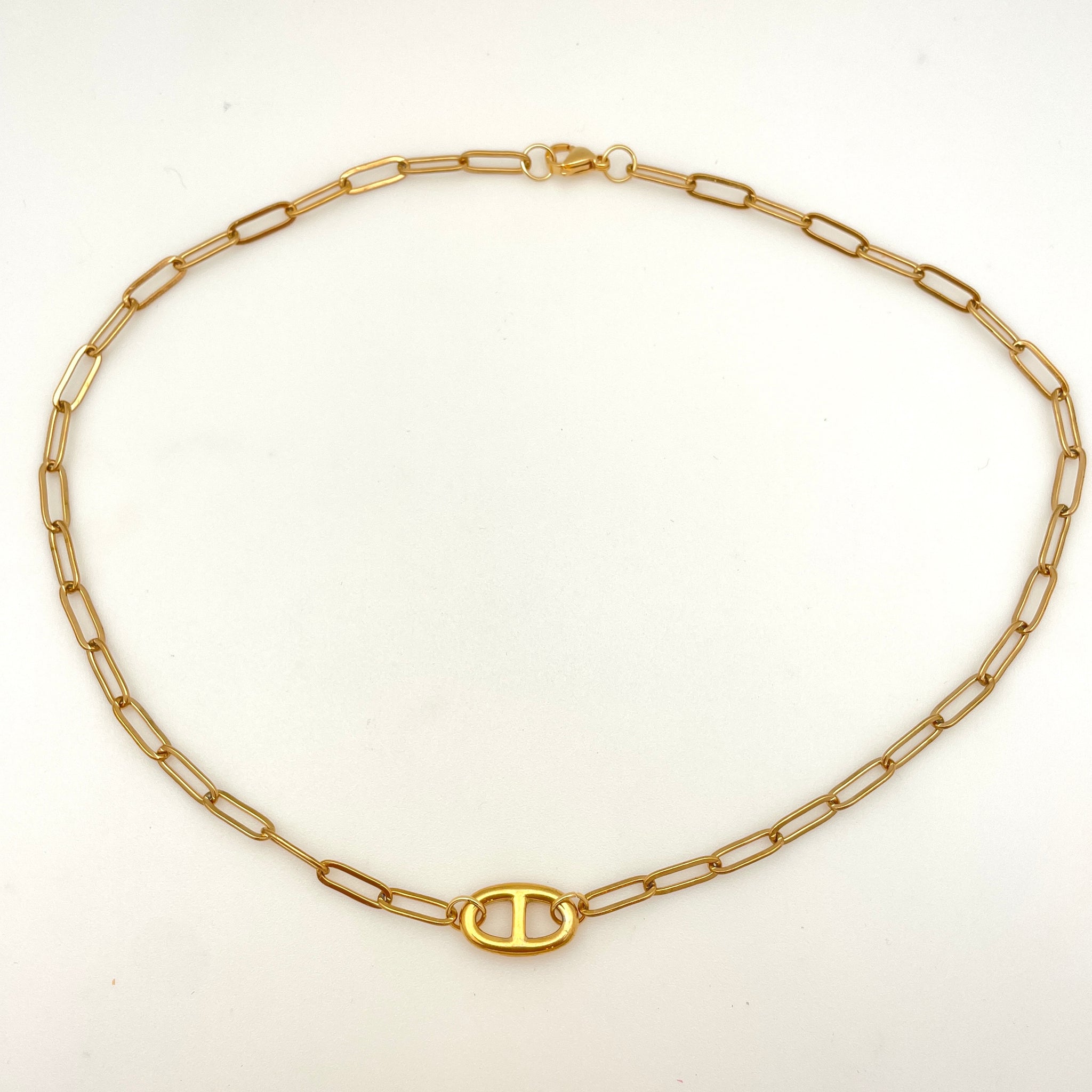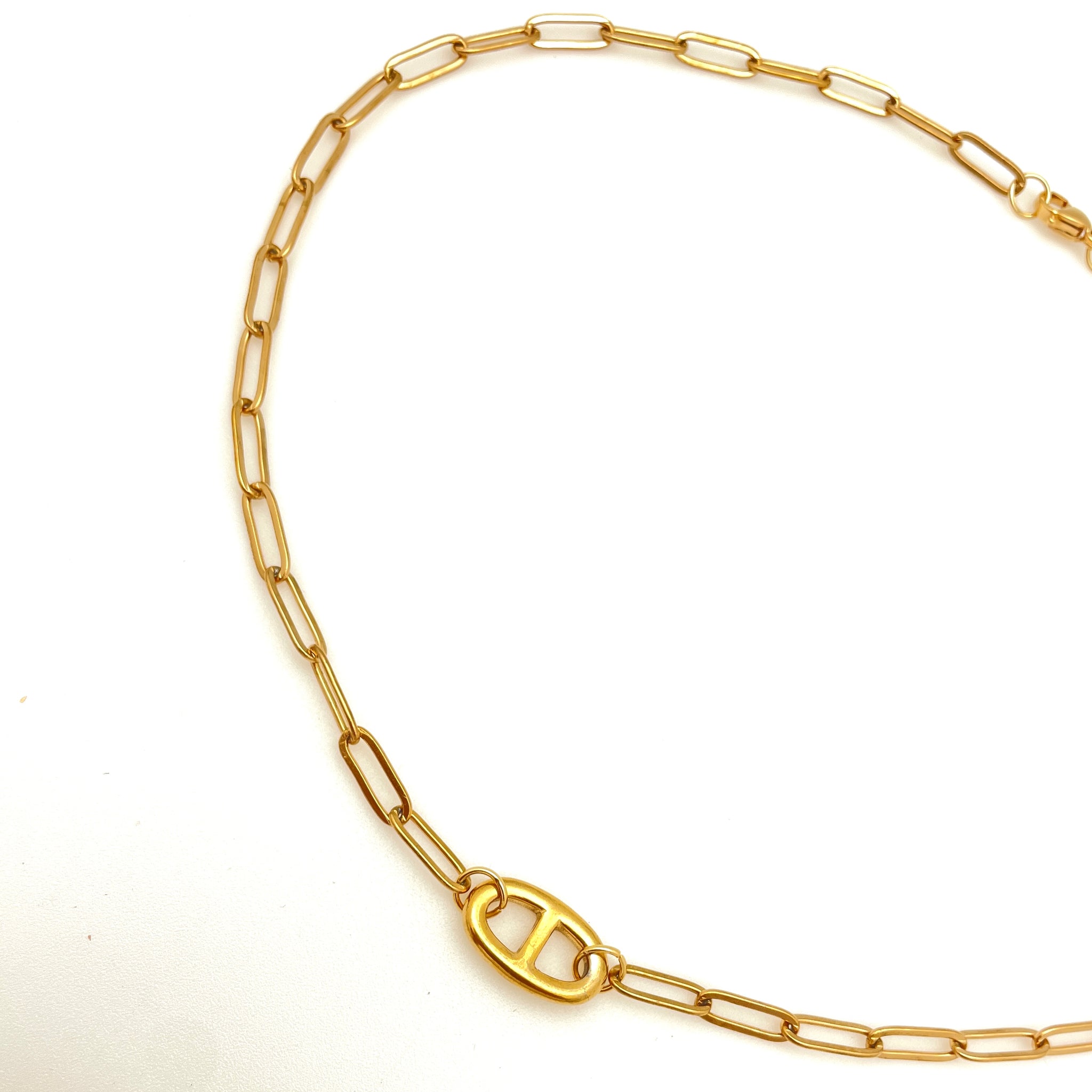 Stainless Steel Oval Link Bracelet and Necklace with Paperclip Chains