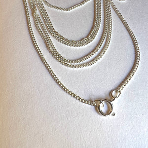 Sterling silver round curb link chain in 16, 18 and 20" length necklaces.