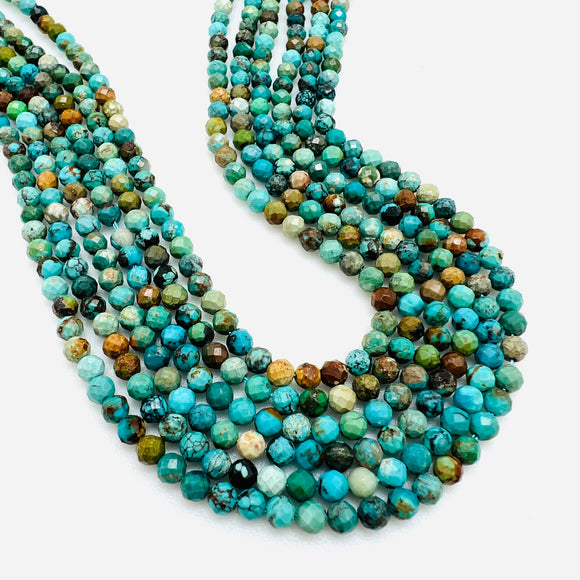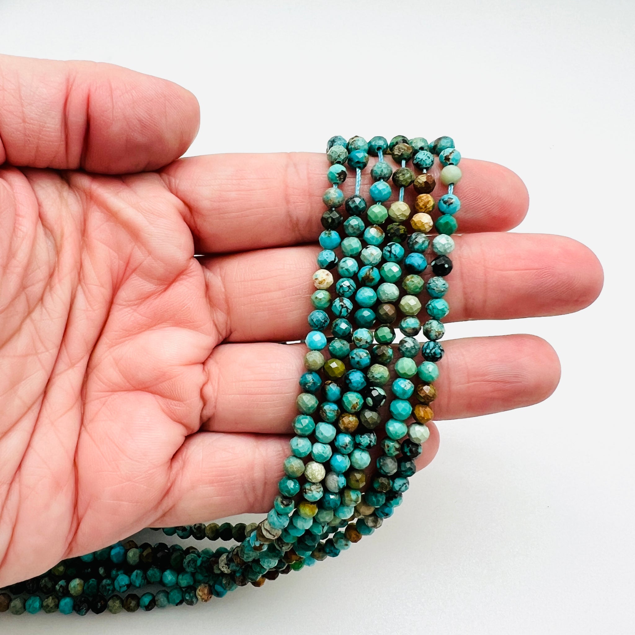 Faceted 3.5mm natural turquoise beads on a 15.5" strand