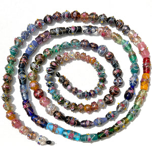 Large, teardrop shaped Venetian-style glass beads in a variety of colors.